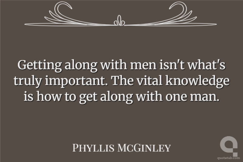 Getting along with men isn't what's truly important. The vital knowledge is how to get along with one man.