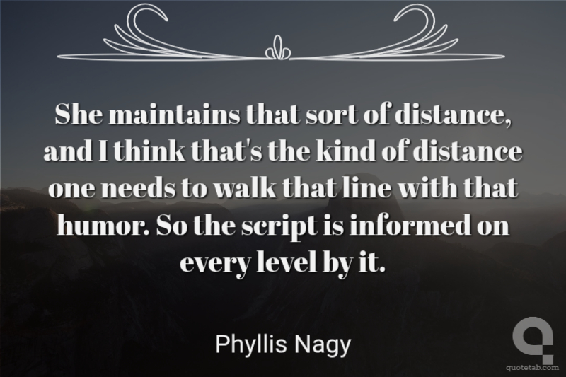 She maintains that sort of distance, and I think that's the kind of distance one needs to walk that line with that humor. So the script is informed on every level by it.