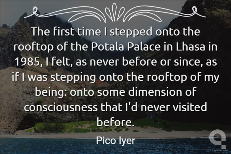 The first time I stepped onto the rooftop of the Potala Palace in Lhasa in 1985, I felt, as never before or since, as if I was stepping onto the rooftop of my being: onto some dimension of consciousness that I'd never visited before.