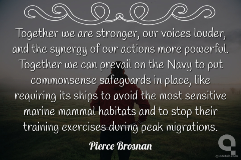 Together we are stronger, our voices louder, and the synergy of our actions more powerful. Together we can prevail on the Navy to put commonsense safeguards in place, like requiring its ships to avoid the most sensitive marine mammal habitats and to stop their training exercises during peak migrations.