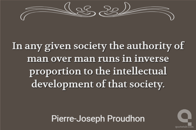In any given society the authority of man over man runs in inverse proportion to the intellectual development of that society.