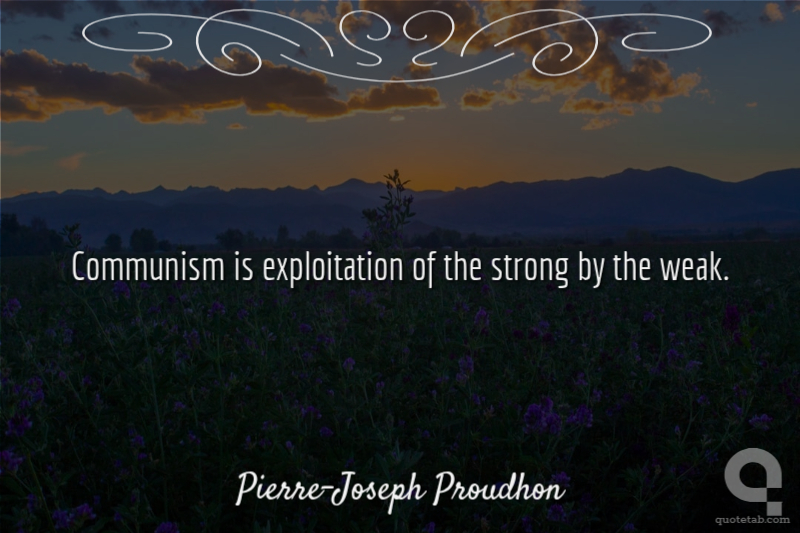 Communism is inequality, but not as property is. Property is exploitation of the weak by the strong. Communism is exploitation of the strong by the weak.