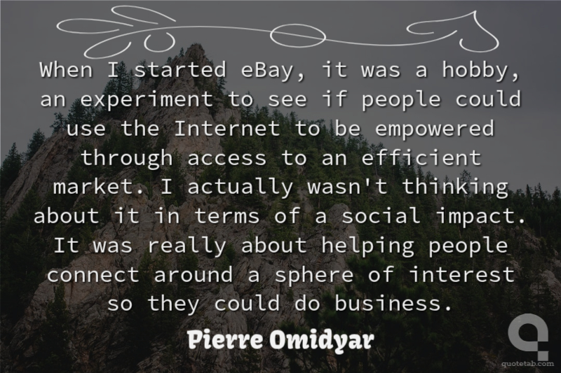 When I started eBay, it was a hobby, an experiment to see if people could use the Internet to be empowered through access to an efficient market. I actually wasn't thinking about it in terms of a social impact. It was really about helping people connect around a sphere of interest so they could do business.