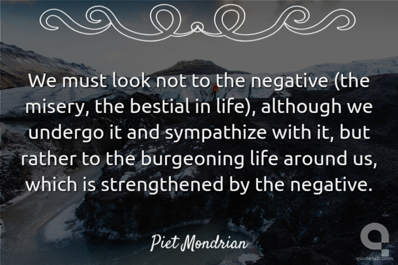 We must look not to the negative (the misery, the bestial in life), although we undergo it and sympathize with it, but rather to the burgeoning life around us, which is strengthened by the negative.