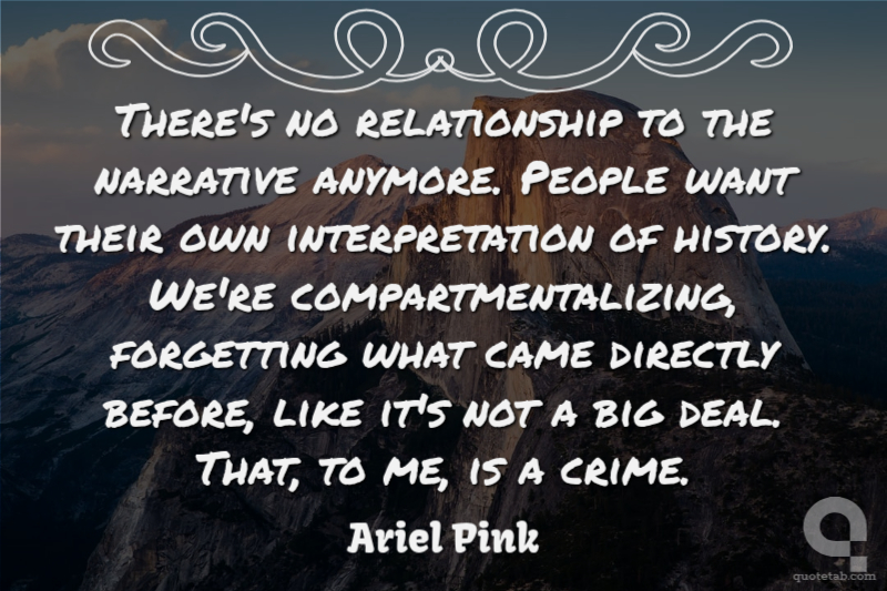 There's no relationship to the narrative anymore. People want their own interpretation of history. We're compartmentalizing, forgetting what came directly before, like it's not a big deal. That, to me, is a crime.