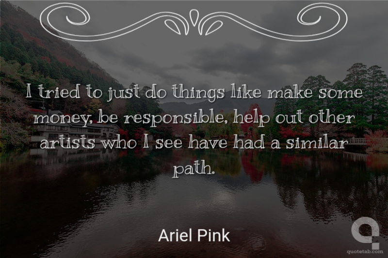 I tried to just do things like make some money, be responsible, help out other artists who I see have had a similar path.