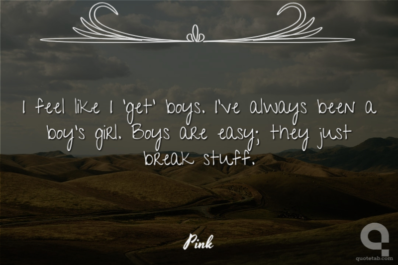 I feel like I 'get' boys. I've always been a boy's girl. Boys are easy; they just break stuff.