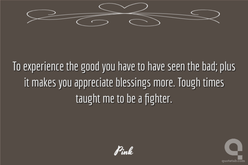 To experience the good you have to have seen the bad; plus it makes you appreciate blessings more. Tough times taught me to be a fighter.