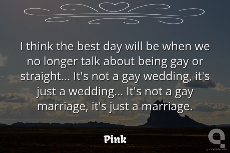I think the best day will be when we no longer talk about being gay or straight... It's not a gay wedding, it's just a wedding... It's not a gay marriage, it's just a marriage.