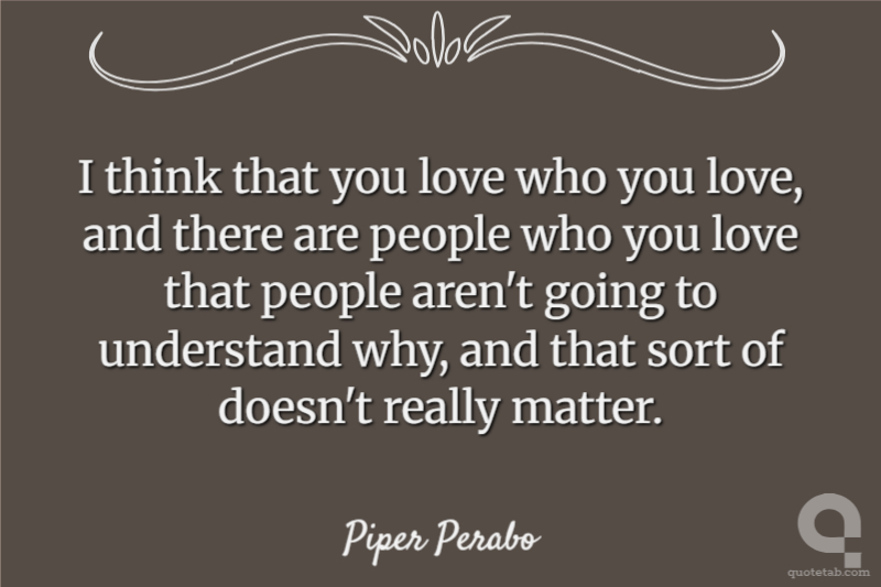 I think that you love who you love, and there are people who you love that people aren't going to understand why, and that sort of doesn't really matter.