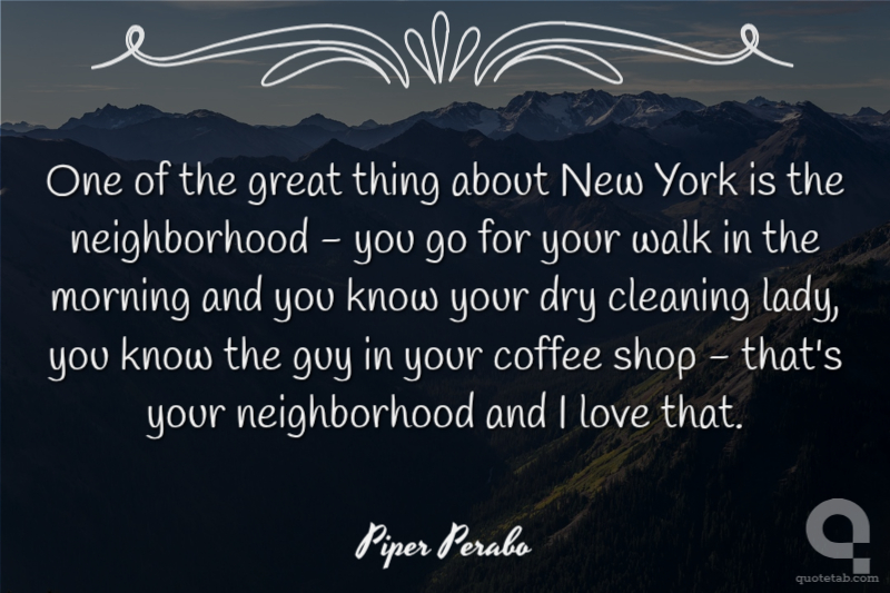One of the great thing about New York is the neighborhood - you go for your walk in the morning and you know your dry cleaning lady, you know the guy in your coffee shop - that's your neighborhood and I love that.