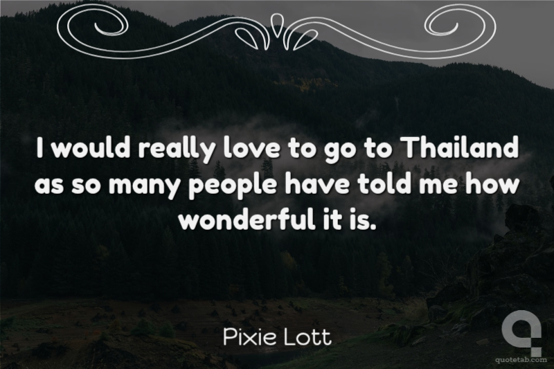 I would really love to go to Thailand as so many people have told me how wonderful it is.