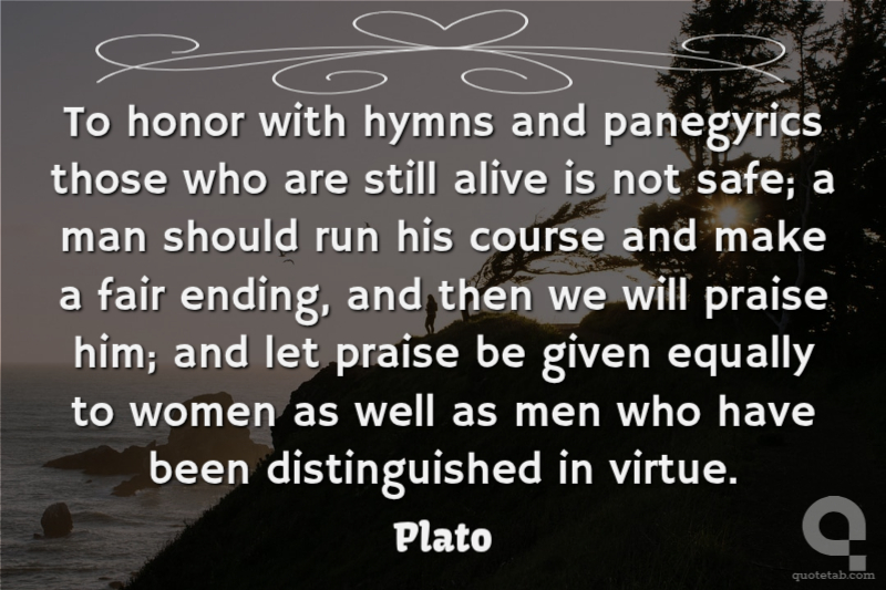 To honor with hymns and panegyrics those who are still alive is not safe; a man should run his course and make a fair ending, and then we will praise him; and let praise be given equally to women as well as men who have been distinguished in virtue.