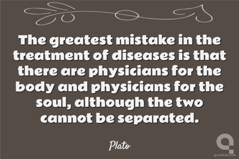 The greatest mistake in the treatment of diseases is that there are physicians for the body and physicians for the soul, although the two cannot be separated.