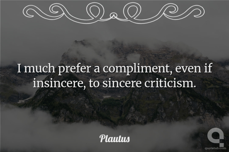 I much prefer a compliment, even if insincere, to sincere criticism.