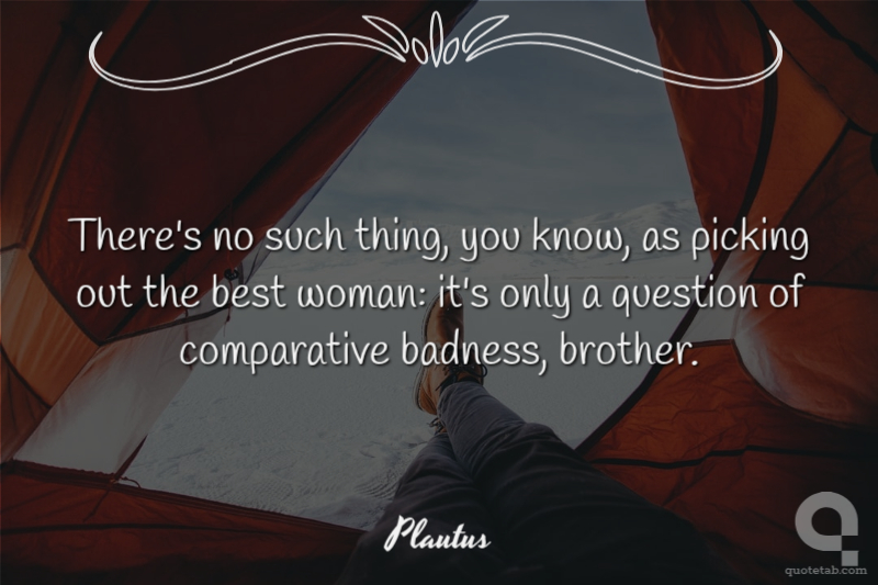 There's no such thing, you know, as picking out the best woman: it's only a question of comparative badness, brother.