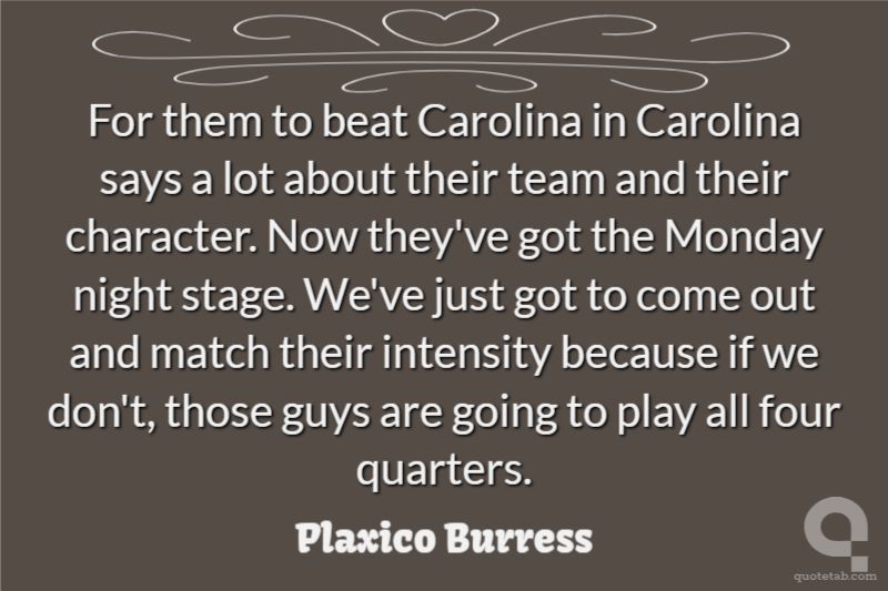 For them to beat Carolina in Carolina says a lot about their team and their character. Now they've got the Monday night stage. We've just got to come out and match their intensity because if we don't, those guys are going to play all four quarters.
