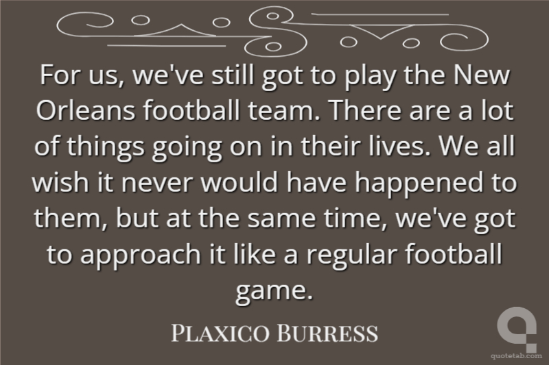 For us, we've still got to play the New Orleans football team. There are a lot of things going on in their lives. We all wish it never would have happened to them, but at the same time, we've got to approach it like a regular football game.