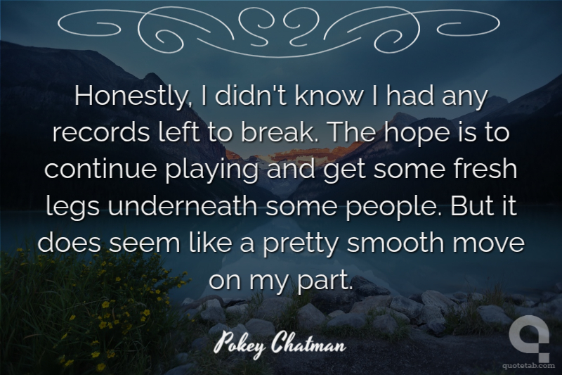 Honestly, I didn't know I had any records left to break. The hope is to continue playing and get some fresh legs underneath some people. But it does seem like a pretty smooth move on my part.