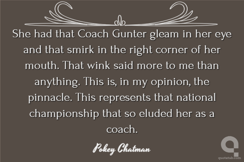 She had that Coach Gunter gleam in her eye and that smirk in the right corner of her mouth. That wink said more to me than anything. This is, in my opinion, the pinnacle. This represents that national championship that so eluded her as a coach.