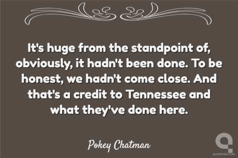 It's huge from the standpoint of, obviously, it hadn't been done. To be honest, we hadn't come close. And that's a credit to Tennessee and what they've done here.