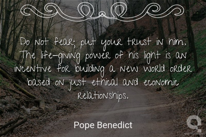Do not fear; put your trust in him. The life-giving power of his light is an incentive for building a new world order based on just ethical and economic relationships.