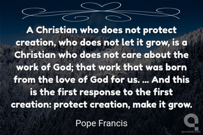 A Christian who does not protect creation, who does not let it grow, is a Christian who does not care about the work of God; that work that was born from the love of God for us. ... And this is the first response to the first creation: protect creation, make it grow.