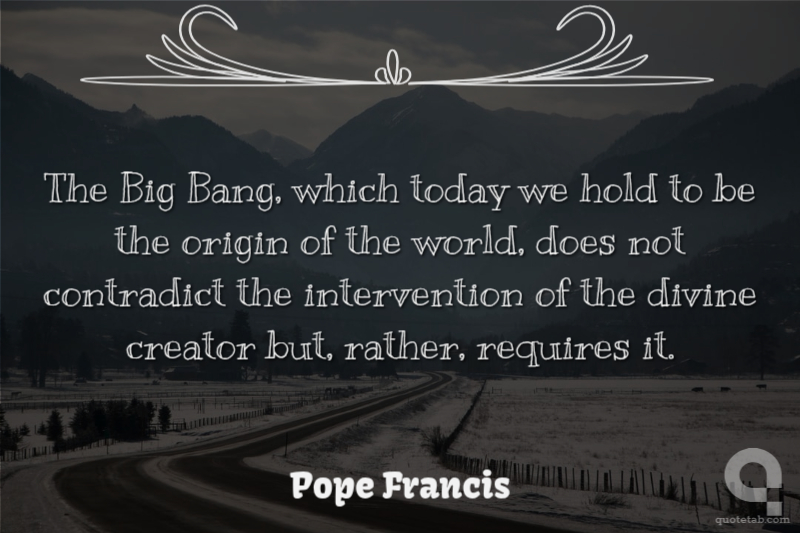 The Big Bang, which today we hold to be the origin of the world, does not contradict the intervention of the divine creator but, rather, requires it.