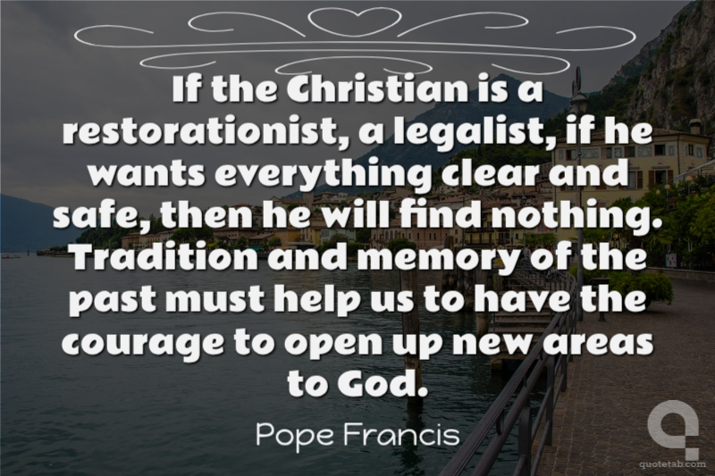 If the Christian is a restorationist, a legalist, if he wants everything clear and safe, then he will find nothing. Tradition and memory of the past must help us to have the courage to open up new areas to God.