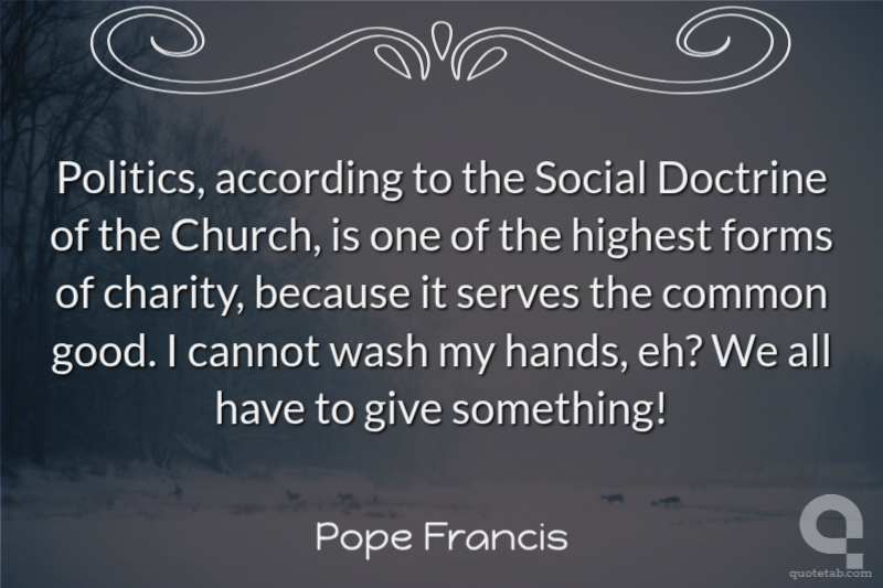 Politics, according to the Social Doctrine of the Church, is one of the highest forms of charity, because it serves the common good. I cannot wash my hands, eh? We all have to give something!