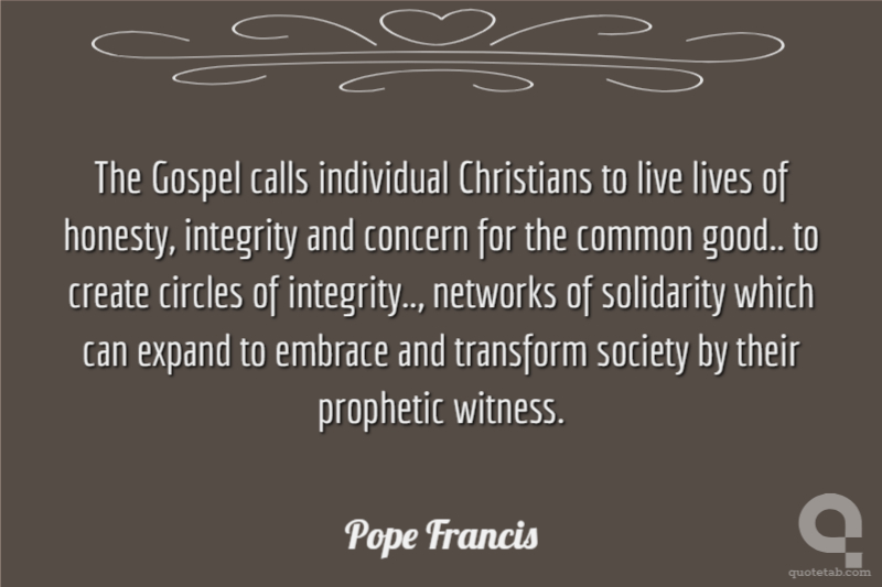 The Gospel calls individual Christians to live lives of honesty, integrity and concern for the common good.. to create circles of integrity.., networks of solidarity which can expand to embrace and transform society by their prophetic witness.