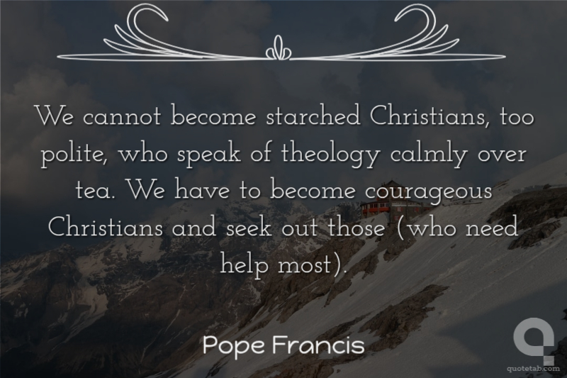 We cannot become starched Christians, too polite, who speak of theology calmly over tea. We have to become courageous Christians and seek out those (who need help most).