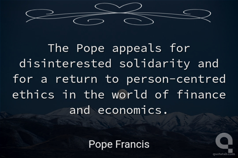 The Pope appeals for disinterested solidarity and for a return to person-centred ethics in the world of finance and economics.