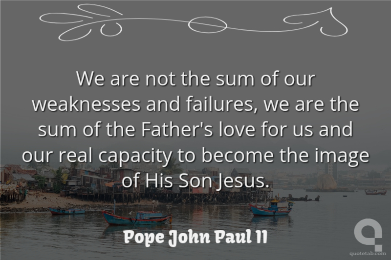 We are not the sum of our weaknesses and failures, we are the sum of the Father's love for us and our real capacity to become the image of His Son Jesus.