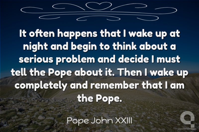 It often happens that I wake up at night and begin to think about a serious problem and decide I must tell the Pope about it. Then I wake up completely and remember that I am the Pope.