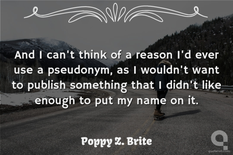 And I can't think of a reason I'd ever use a pseudonym, as I wouldn't want to publish something that I didn't like enough to put my name on it.