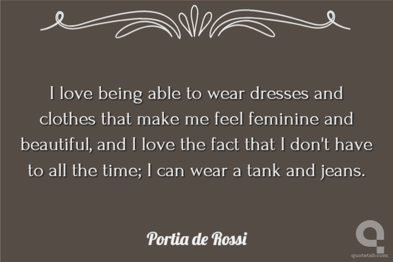 I love being able to wear dresses and clothes that make me feel feminine and beautiful, and I love the fact that I don't have to all the time; I can wear a tank and jeans.