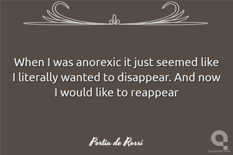 When I was anorexic it just seemed like I literally wanted to disappear. And now I would like to reappear