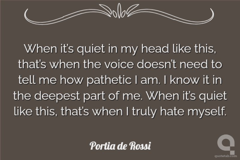 When it’s quiet in my head like this, that’s when the voice doesn’t need to tell me how pathetic I am. I know it in the deepest part of me. When it’s quiet like this, that’s when I truly hate myself.