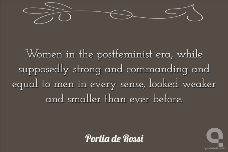 Women in the postfeminist era, while supposedly strong and commanding and equal to men in every sense, looked weaker and smaller than ever before.