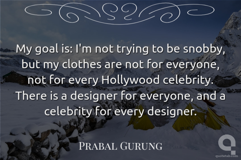 My goal is: I'm not trying to be snobby, but my clothes are not for everyone, not for every Hollywood celebrity. There is a designer for everyone, and a celebrity for every designer.