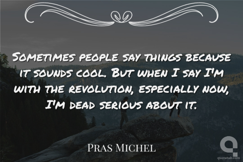 Sometimes people say things because it sounds cool. But when I say I'm with the revolution, especially now, I'm dead serious about it.