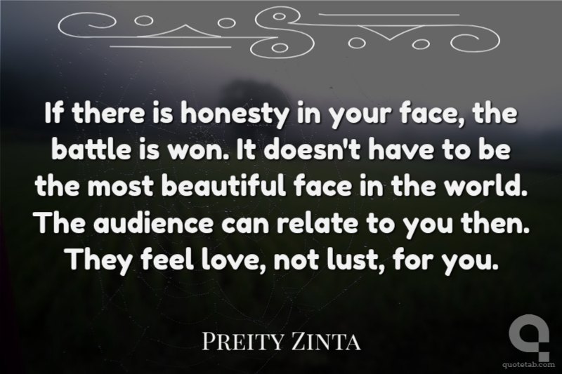 If there is honesty in your face, the battle is won. It doesn't have to be the most beautiful face in the world. The audience can relate to you then. They feel love, not lust, for you.