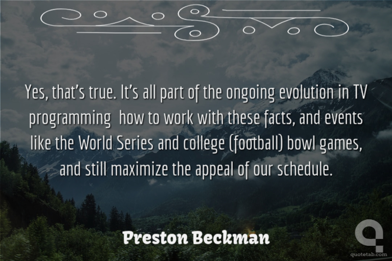 Yes, that's true. It's all part of the ongoing evolution in TV programming how to work with these facts, and events like the World Series and college (football) bowl games, and still maximize the appeal of our schedule.