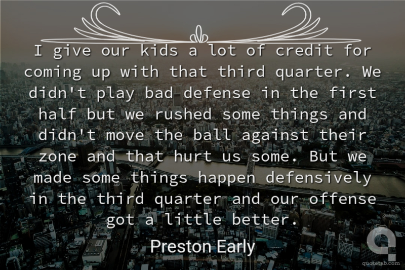 I give our kids a lot of credit for coming up with that third quarter. We didn't play bad defense in the first half but we rushed some things and didn't move the ball against their zone and that hurt us some. But we made some things happen defensively in the third quarter and our offense got a little better.