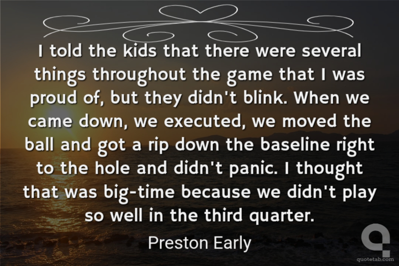 I told the kids that there were several things throughout the game that I was proud of, but they didn't blink. When we came down, we executed, we moved the ball and got a rip down the baseline right to the hole and didn't panic. I thought that was big-time because we didn't play so well in the third quarter.