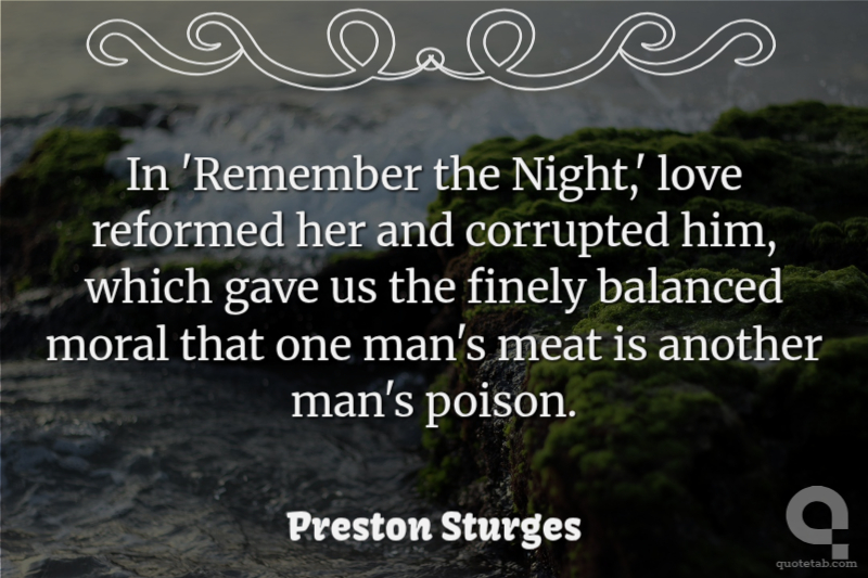 In 'Remember the Night,' love reformed her and corrupted him, which gave us the finely balanced moral that one man's meat is another man's poison.