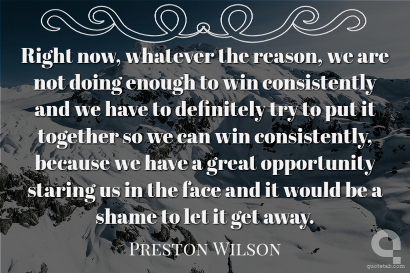 Right now, whatever the reason, we are not doing enough to win consistently and we have to definitely try to put it together so we can win consistently, because we have a great opportunity staring us in the face and it would be a shame to let it get away.