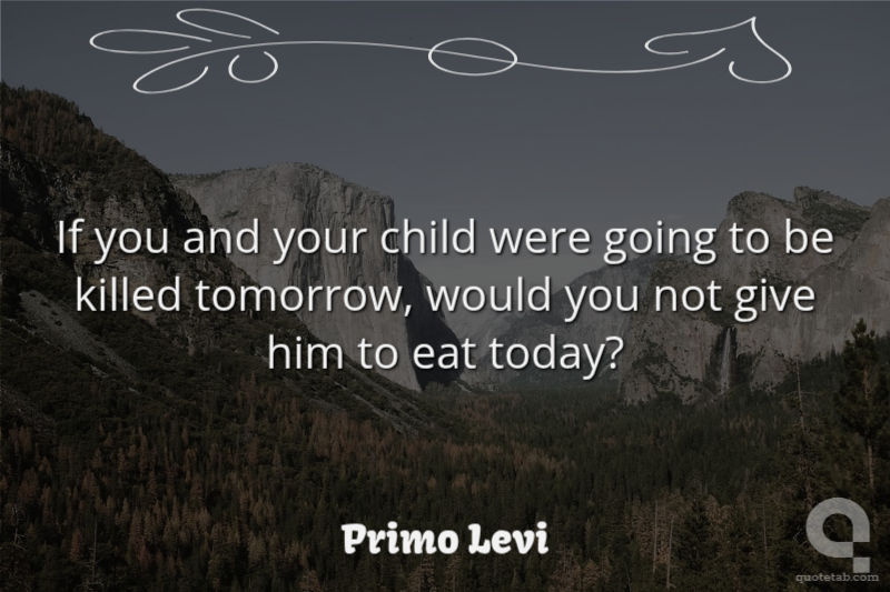 If you and your child were going to be killed tomorrow, would you not give him to eat today?