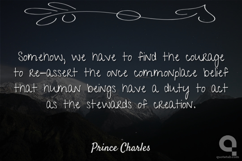 Somehow, we have to find the courage to re-assert the once commonplace belief that human beings have a duty to act as the stewards of creation.